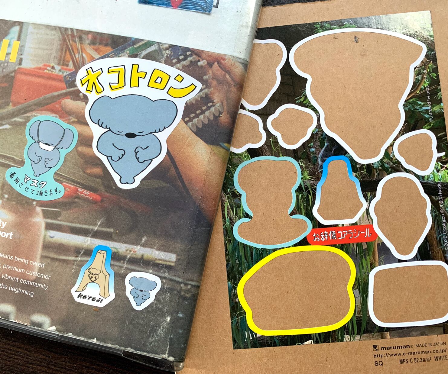 1stカセットテープのジャケットのイラストを手掛けたオコトロンのメンバー吉田朝麻による、お辞儀コアラをはじめマスクコアラや工事現場コアラ、琴の調律用「琴柱」のシールなど…オリジナリティ溢れるシールです!